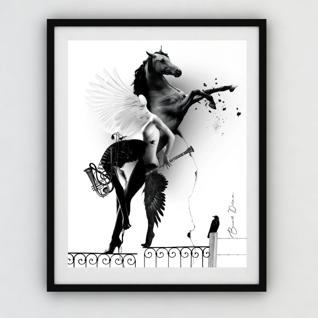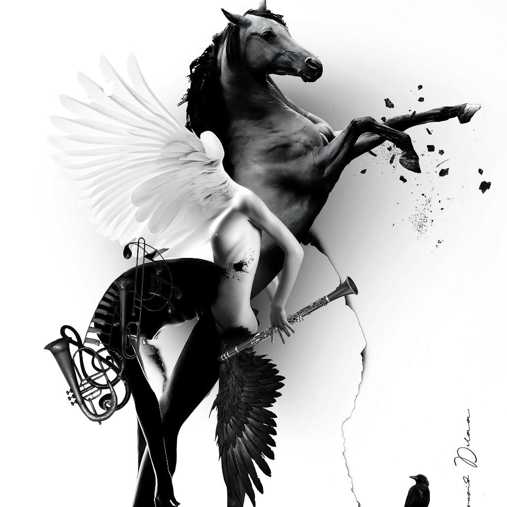 The horse rises in defiance, the wings strain toward flight, while the instruments bind and still. These are the tensions I’ve wrestled with: resilience against collapse, hope against exhaustion, creation against silence.